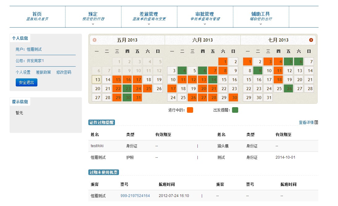 | 首頁 | 行程記錄、證件過期提醒、過期未使用機(jī)票提醒 |